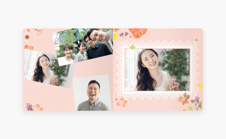 スゴヨセの機能で、1ページに複数枚の写真を自由に配置することもできるので、メッセージだけでなく思い出の写真も載せて、印象に残る1冊を作っていただけます。